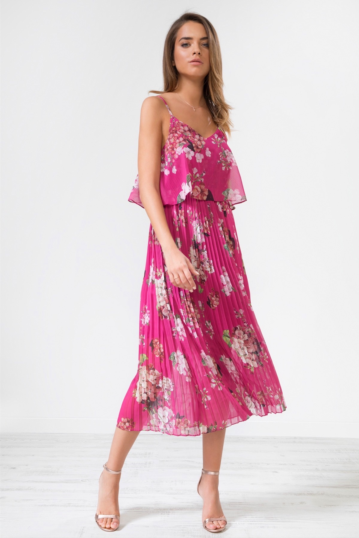 Floral Print Pleated Cami Midi Dress Urban Touch